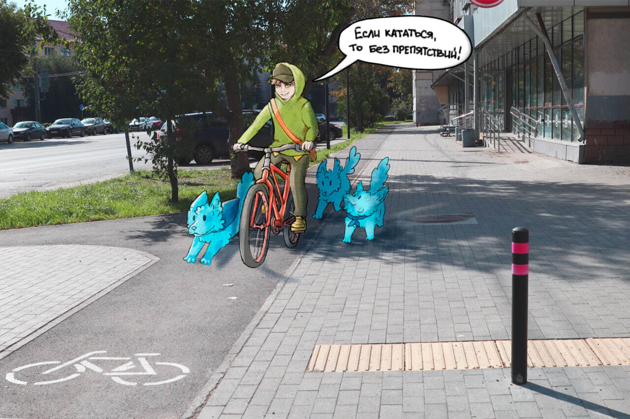 — Прокатились по велодорожке на пешеходной зоне по улице Свободы