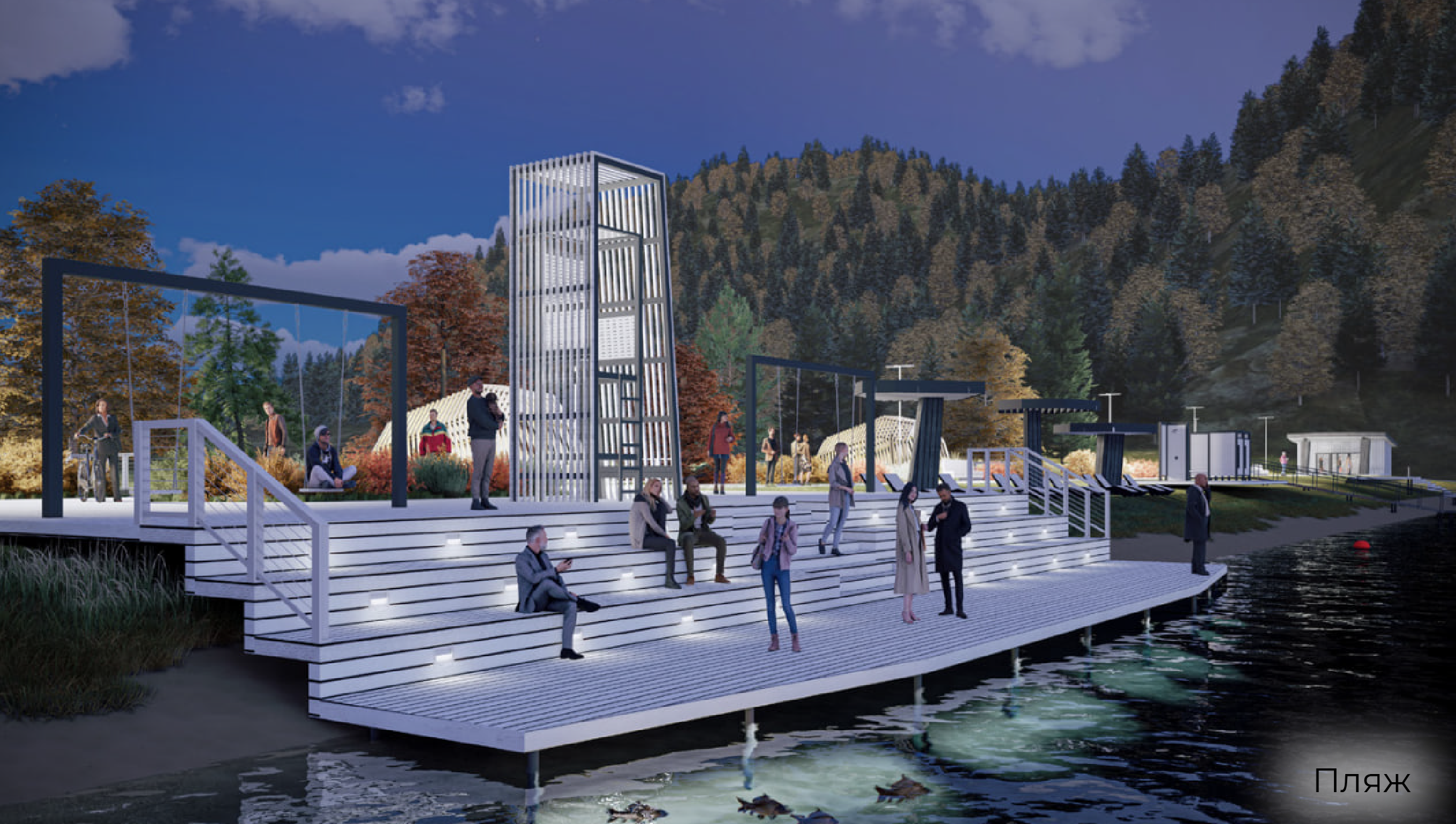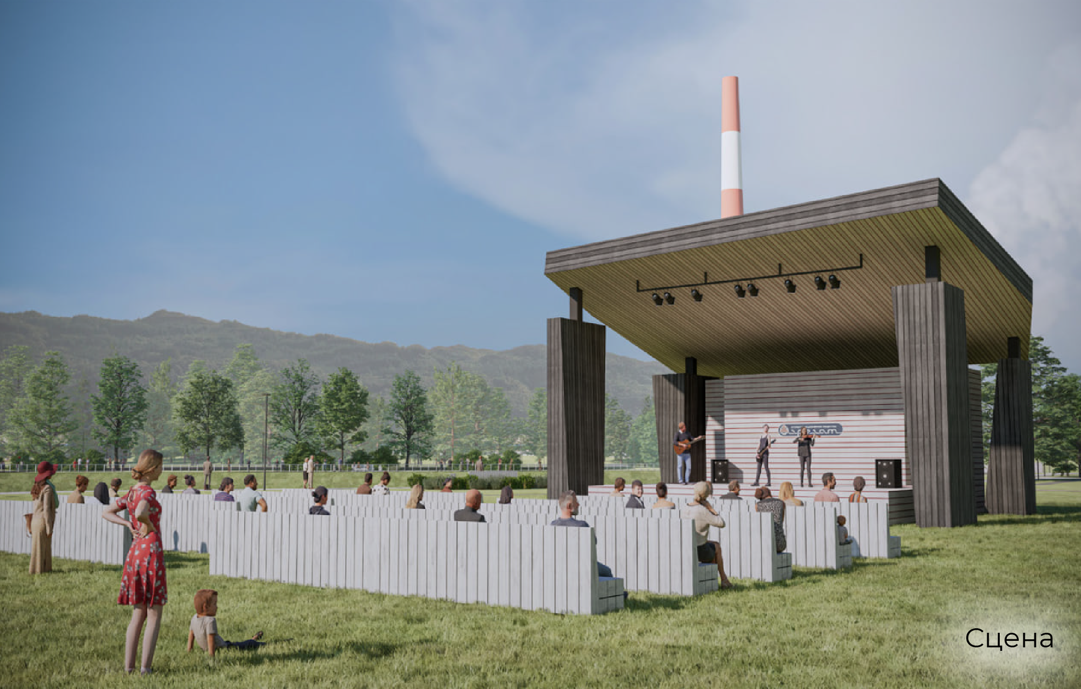 Горожане, Администрация Симского городского поселения и Isaev Architects в сотрудничестве с командой Регионального центра компетенций по вопросам городской среды Челябинской области провели историко-ретроспективный анализ, исследование текущей ситуации и визуальных образов. Последние прошли путь от смысловых составляющих до функциональных объектов. Так скала превратилась в сцену и беседки-барбекю, пещерная живопись — в арт-объекты «Человечек» и «Кони», а близкое к башкирскому «сюм» («глубокое место в реке» или «омут») название города — в аутентичный игровой комплекс.